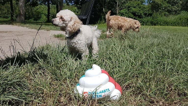 Edwin Paardekooper van Dierenartskiezen.nl wil hondeneigenaren bewuster maken van deze problematiek en lanceert daarom een campagne rondom een nieuw poepbakje. “Dat lijkt op een plastic broodbak in de vorm van een hondendrol. Het poepbakje kan in de afwasmachine en gaat zeker tien jaar mee.”